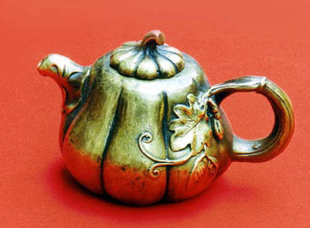 銅茶壺金屬用具是指由金、銀、銅、鐵、錫等金屬材料制作而成的器具。它是我國(guó)最古老的日用器具之一,早在公元前18世紀(jì)至公元前221年秦始皇統(tǒng)一中國(guó)之前的1500年間,青銅器就得到了廣泛的應(yīng)用,先人用青銅制作盤(pán)盛水,制作爵、尊盛酒,這些青銅器皿自然也可用來(lái)盛茶。自秦漢至六朝,茶葉作為飲料已漸成風(fēng)尚,茶具也逐漸從與其他飲具共用中分離出來(lái)。大約到南北朝時(shí),我國(guó)出現(xiàn)了包括飲茶器皿在內(nèi)的金銀器具。到隋唐時(shí),金銀器具的制作達(dá)到高峰。本世紀(jì)80年代中期,陜西扶風(fēng)法門(mén)寺出土的一套由唐僖宗供奉的鎏金茶具,可謂是金屬茶具中罕見(jiàn)的稀世珍寶。但從宋代開(kāi)始,古人對(duì)金屬茶具褒貶不一。貯茶錫罐元代以后,特別是從明代開(kāi)始,隨著茶類的創(chuàng)新,飲茶方法的改變,以及陶瓷茶具的興起,才使包括銀質(zhì)器具在內(nèi)的金屬茶具逐漸消失,尤其是用錫、鐵、鉛等金屬制作的茶具,用它們來(lái)煮水泡茶,被認(rèn)為會(huì)使;茶味走樣以致很少有人使用。但用金屬制成貯茶器具,如錫瓶、錫罐等,卻屢見(jiàn)不鮮。這是因?yàn)榻饘儋A茶器具的密閉性要比紙、竹、木、瓷、陶等好,具有較好的防潮、避光性能,這樣更有利于散茶的保藏。因此,用錫制作的貯茶器具,至今仍流行于世。