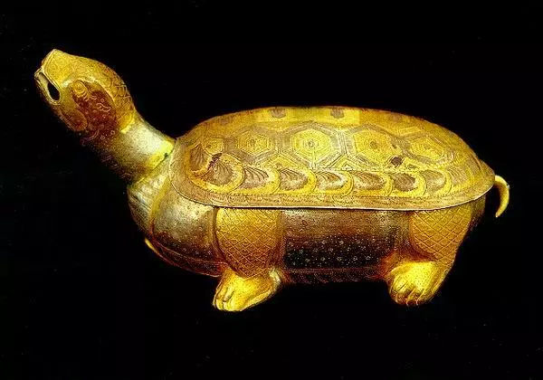 咸通十五年(874)正月初四日,唐僖宗歸安佛骨于法門寺,以數(shù)千件皇室奇珍異寶安放地宮以作供養(yǎng)。1981年8月24日,法門寺明代真身寶塔半壁坍塌,1987年4月3日發(fā)現(xiàn)唐代地宮,考古工作者進(jìn)行科學(xué)發(fā)掘。在地宮后室的壇場(chǎng)中心供奉著一套以金銀質(zhì)為主的宮廷御用系列茶具。這套以唐代僖宗皇帝小名——“五哥”標(biāo)記的系列茶具,引起全世界茶文化界的矚目。