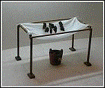 茶模下置檐布(檐是褶文很細(xì),表面光滑的綢布)檐下放石承(受臺(tái)),承一半埋入土中,使模固定而不滑動(dòng)。茶泥傾入模后須加以拍擊,使其結(jié)構(gòu)緊密堅(jiān)實(shí)不留有縫隙,等茶完全凝固,拉起檐布即可輕易取出,然后更換下一批凝固的團(tuán)茶,水份并未干燥,先置莊莉(竹簍)上透干。
