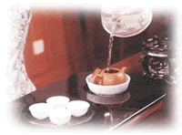 1、噓寒問(wèn)暖(濕壺):俗稱“濕壺”,將初沸水注入空壺,以提高壺溫,便于沖泡。