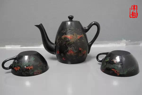 漆器茶具始于清代,主要產(chǎn)于福建福州一帶。福州生產(chǎn)的漆器茶具多姿多彩,有寶砂閃光、金絲瑪瑙、釉變金絲、仿古瓷、雕填、高雕和嵌白銀等品種。
