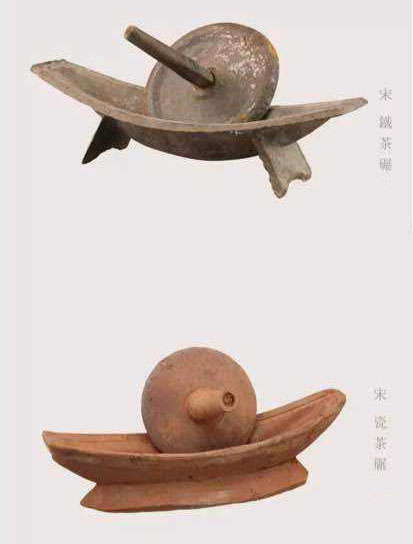 宋代采用的是點茶法,茶碾碎后放在盞中用沸水沖著喝,因此對茶末的精細程度要求更高,對茶碾的要求自然也隨即提高。宋代時金屬制的船型茶碾便更受歡迎,因為這種材質(zhì)和造型的茶碾碾壓后的茶末更加的精細,茶末和水能夠更加充分的融合。