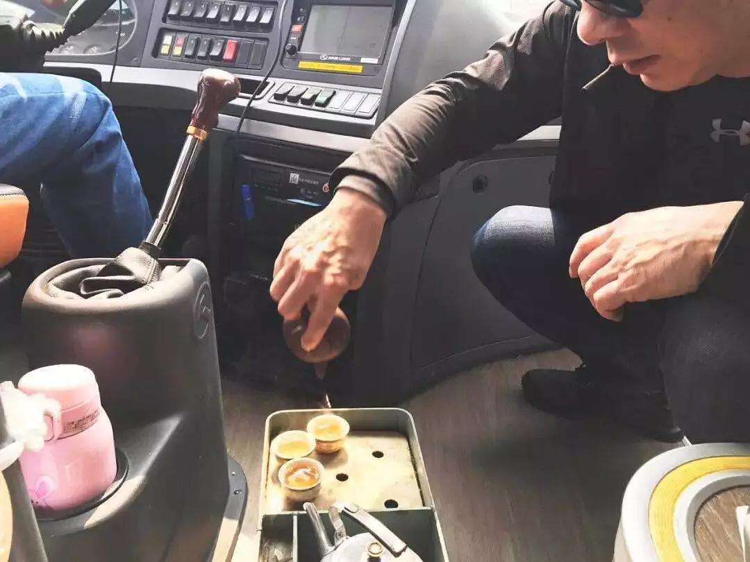 對(duì)潮汕人來(lái)說(shuō)沒(méi)有什么能夠阻擋喝茶的心,不少潮汕司機(jī)還會(huì)在車(chē)上配備工夫茶具。
