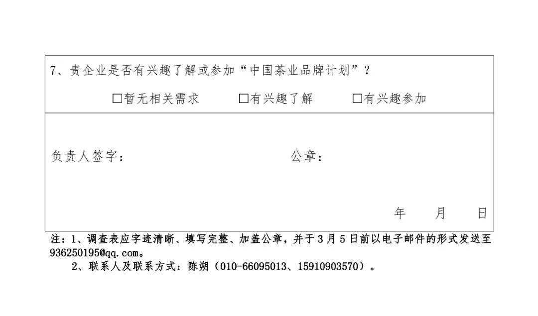關(guān)于開(kāi)展茶企品牌發(fā)展服務(wù)需求調(diào)查的通知